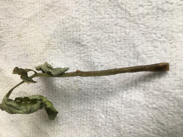 これがカットした部分です。ここから葉っぱを2枚落として水に差しておきました。こっから根っこが出てきてらいいなと思っておりました。